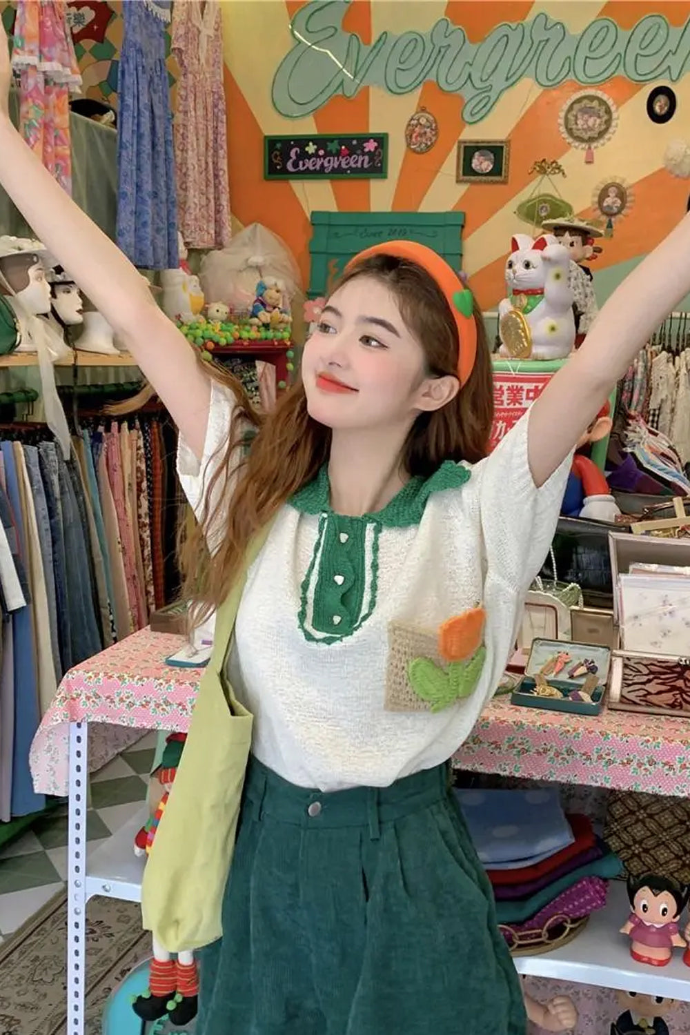 Short Sleeve Lapel Collar 3D Flower Pocket Knitted Shirt – Tomscloth