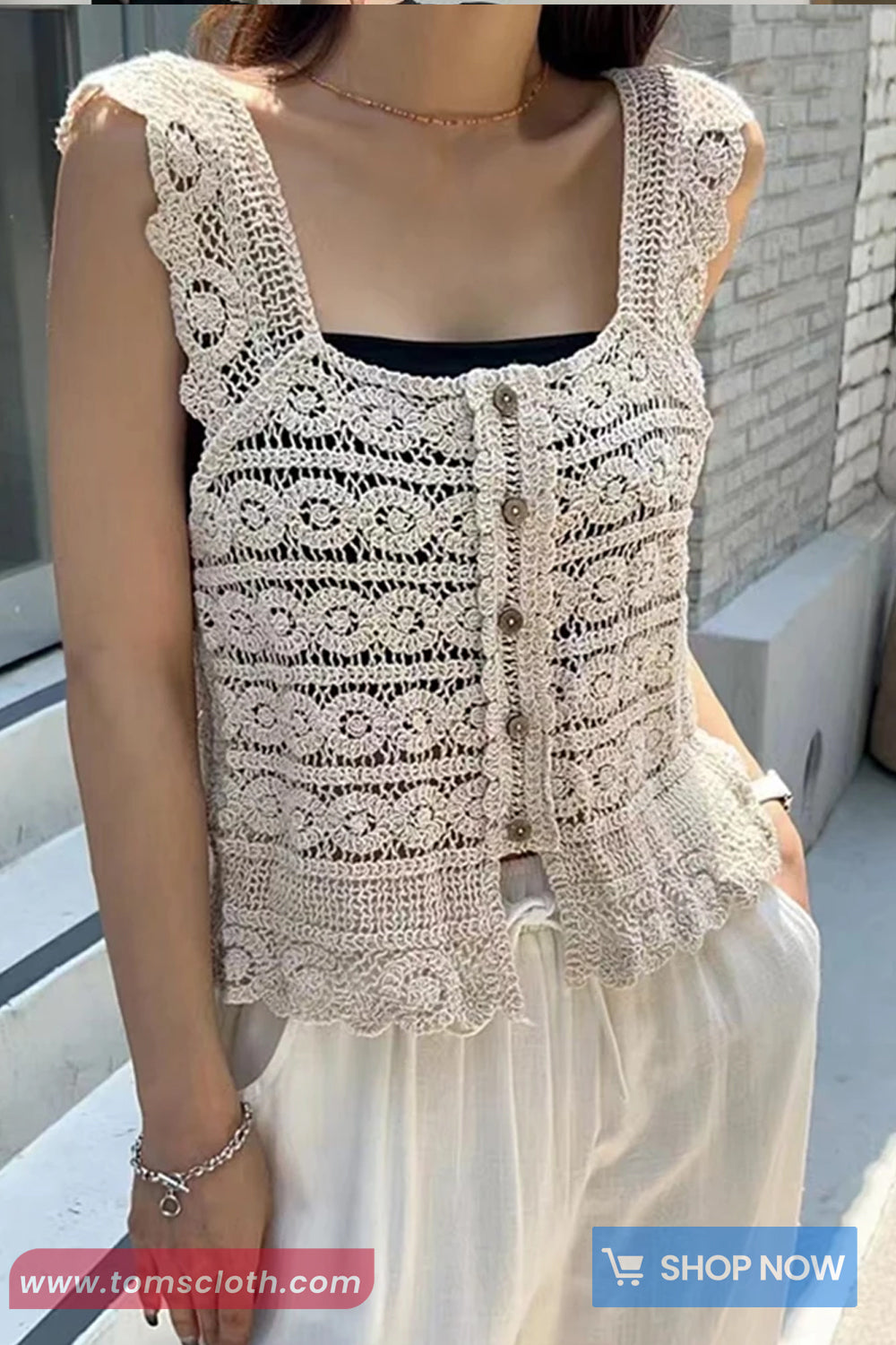 Buy Square Neck Front Button Crochet Tops from Tomscloth for your outfit of the day. This item is in stock and ready to order. Enjoy 10% discount with using this code: TOMS_MANIA .