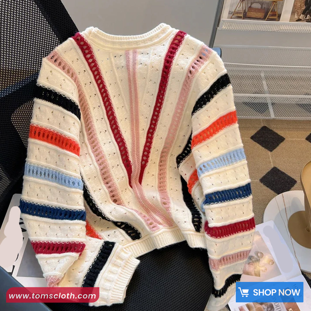 Buy Striped Color Hollow Style Casual Sweater from Tomscloth for your outfit of the day. This item is in stock and ready to order. Enjoy 10% discount with using this code: TOMS_MANIA .