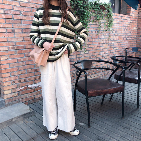 Striped Thin O-Neck Knitting Loose Sweater