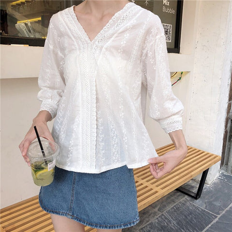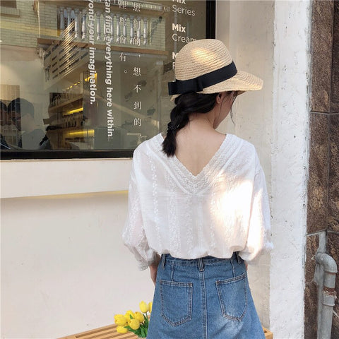 Summer Loose V-Neck Lace Tops
