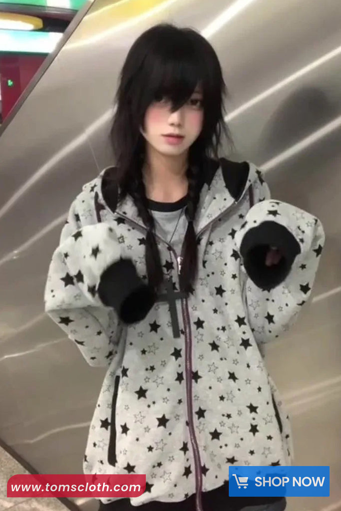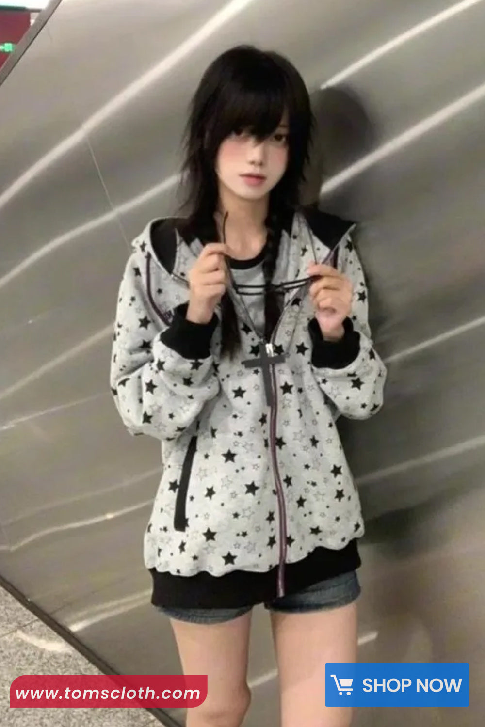 Buy Vintage Stars Pattern Zipper Casual Hoodie from Tomscloth for your outfit of the day. This item is in stock and ready to order. Enjoy 10% discount with using this code: TOMS_MANIA .