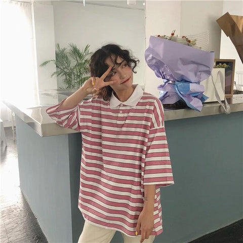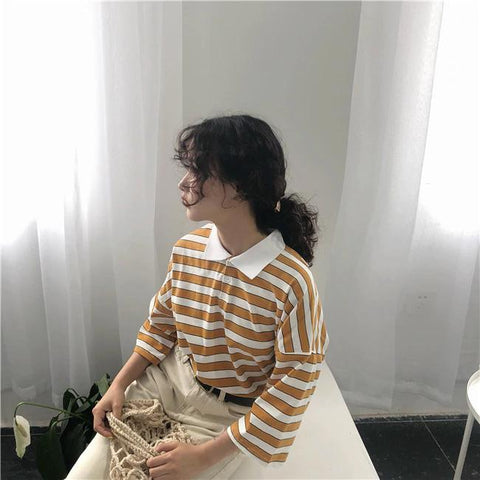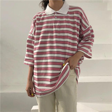Vintage Stripes Loose Style Turn Down Collar Shirt