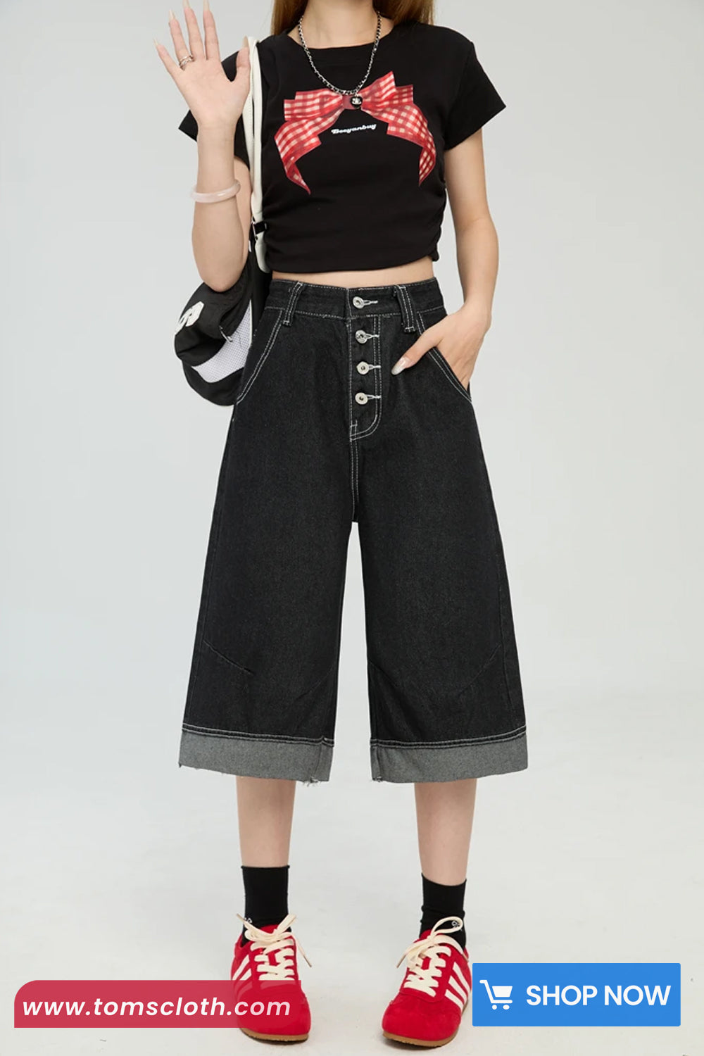 Buy High Waist Calf Length Retro Black Jeans Pants from Tomscloth for your outfit of the day. This item is in stock and ready to order. Enjoy 10% discount with using this code: TOMS_MANIA .
