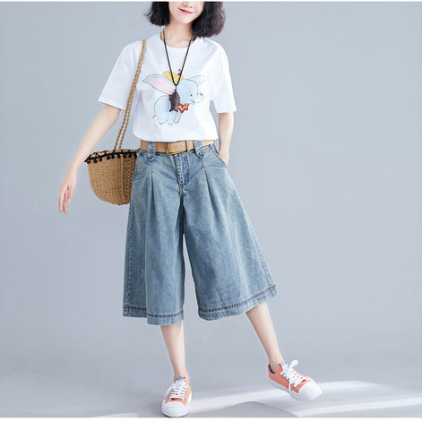 High Waist Denim Wide Leg Shorts Pants Jeans