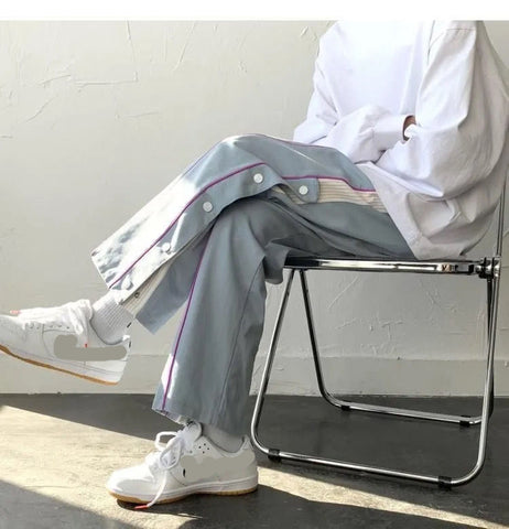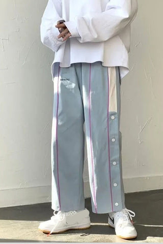 High Waist Vintage Side Button Loose Pants