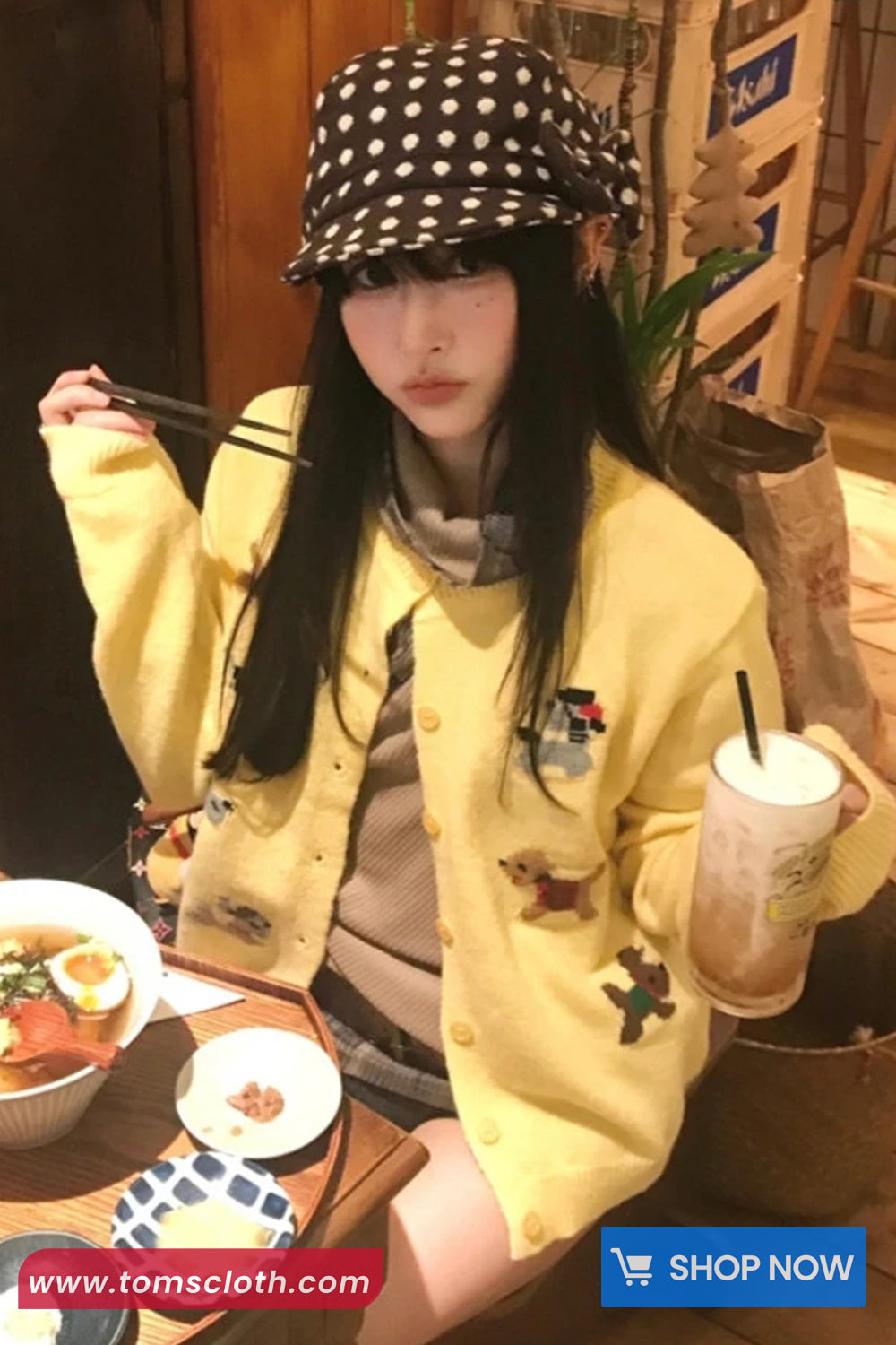 Buy Long Sleeve Cute Puppy Embroidered Cardigan Sweater from Tomscloth for your outfit of the day. This item is in stock and ready to order. Enjoy 10% discount with using this code: TOMS_MANIA .