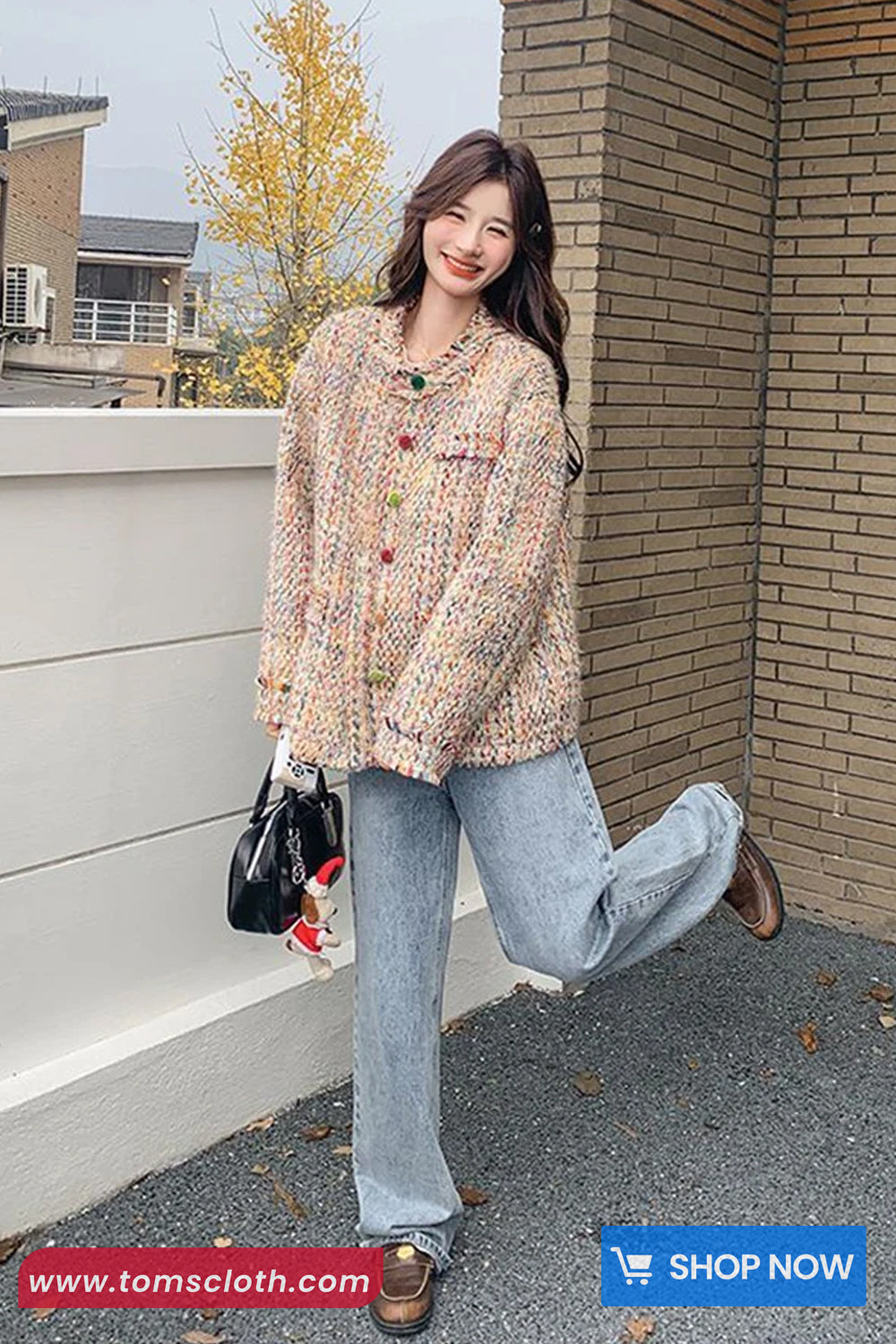 Buy Loose Retro Sweet Colors O-Neck Tweed Jacket from Tomscloth for your outfit of the day. This item is in stock and ready to order. Enjoy 10% discount with using this code: TOMS_MANIA .