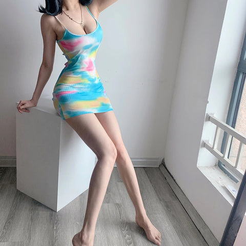 Sexy Tie Dye Elastic Mini Dress
