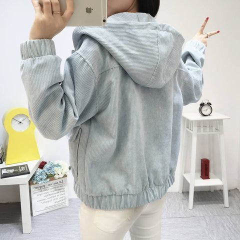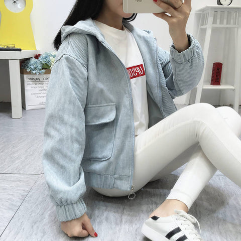 Zip Up Hooded Corduroy Jacket